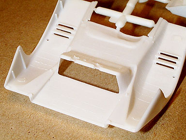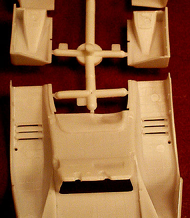 First, wash parts 1-4 (leaving them on the sprue for now) in warm water with a drop of dishwashing liquid to remove mold release. Let them air-dry or use a food dehydrator to completely dry these four parts. A quick look at these pieces reveals sharp casting with little flash, but several ejector pin marks that are either protruding or recessed.The pin marks you see above should be removed, even though they will be hard to see when covered by A9 and A10. The reason is that this surface has a nice texture that replicates the fiberglass. So the inner surfaces should all be finished as nicely as possible.![]()