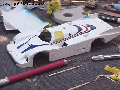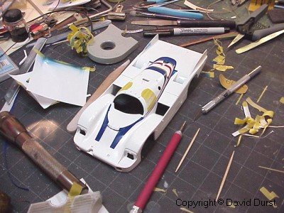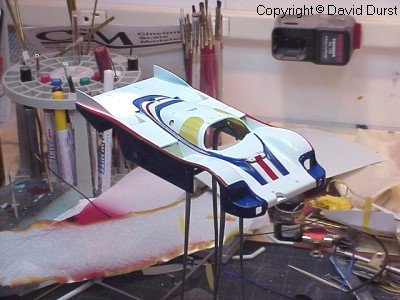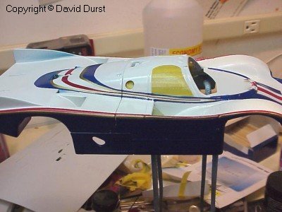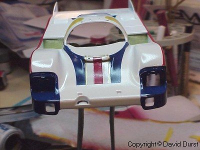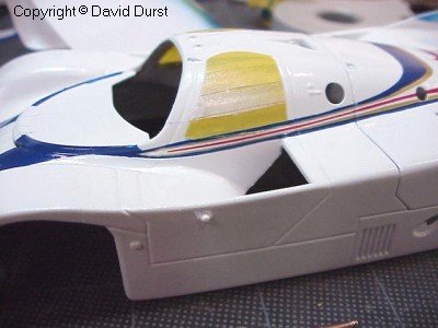 After all of the stripes on the top and nose of the car were completed, the stripes on the