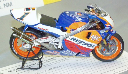 Tamiya's superb Honda NSR500. The growing popularity in sportsbikes has been a boon to us modelers. Not sure WHAT happened with the color in this photo.