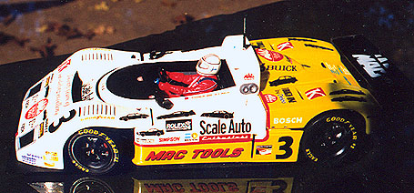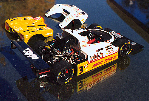This is a 1/24th scale heavily kit bashed/scratch built spyder that follows the original idea for IMSA's WSC racers. I finished it for the second NAMCC in Chicago a few years back, and I figured the SAE contest was a good reason to un-moth ball it! Besides, I always felt that there should be a secondary sponsor to fill in the white space on the side....
