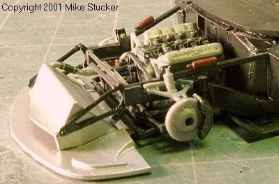 Just follow along with the instructions, and you won't have any problems, at least not major ones. The first thing you do is build the engine. If you want, you could leave the engine out of the model and save it for something else. It is absolutely unviewable when the model is completed. Which is a shame, because once you've got it built and the intake boxes installed, its pretty cool looking. The kit supplies carbon fiber decals to cover the intake boxes. They go on very easily if you use a good decal solvent, but aren't quite cut properly. There were still small gaps of plastic showing after the decals were applied.