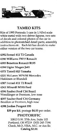 Photorific Ad from 1996 showing full line of 1995 F1 cars available. |