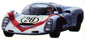| The Porsche 910 came second in the Japanese GP, but dominated the Nurburgring and Targa Florio. Its 2-Liter engine made it less competitive in horsepower, but its superior handling and aerodynamics showed Porsche's potential for future racing success. |