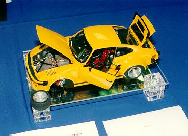 According to a recent posting in rec.models.scale, the incredible model shown below won First Place in the Automotive category. It's an unusual subject for GPMA, but it caught my eye immediately. It's the most striking model I've ever seen. The pictures here don't do it justice. Congratulations to Bill Cunningham, and thanks to him for sharing this model with the rest of us.