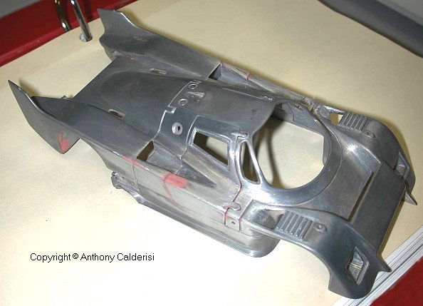 I'm happy I went through the trouble of building this kit, because I'm quite pleased with the final result. The colour scheme is striking and the shape of the car is unique. However, getting the model to look right required an investment in time that could have been spent fully wiring and plumbing a beautiful power plant on another car. This kit is a real dog. The metal body (the kit can also be found with a plastic body) had to be filed down in places so that the different body panels would line up (the doors open).